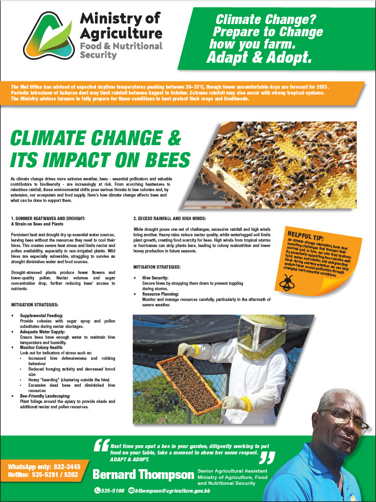 The Met Office has advised of expected daytime temperatures peaking between 30–33°C, though fewer uncomfortable days are forecast for 2025. Periodic intrusions of Saharan dust may limit rainfall between August to October. Extreme rainfall may also occur with strong tropical systems. The Ministry advises farmers to fully prepare for these conditions to best protect their crops and livelihoods.